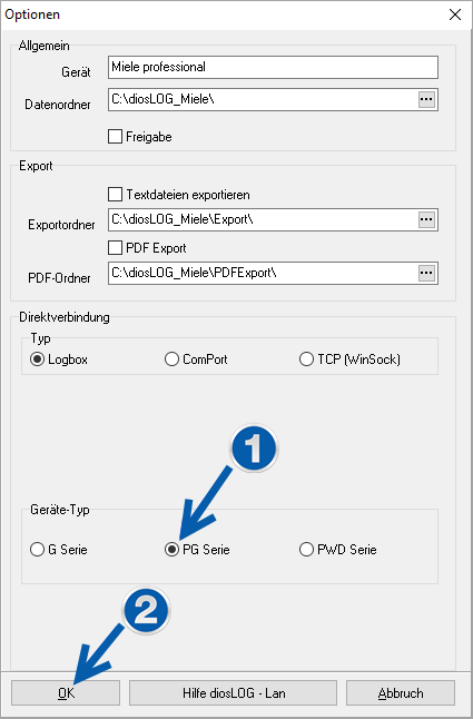 Für den Miele Desinfektor der PG-Serie, wird im Abschnitt Geräte-Typ die PG-Serie gewählt.