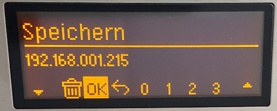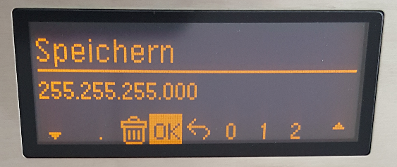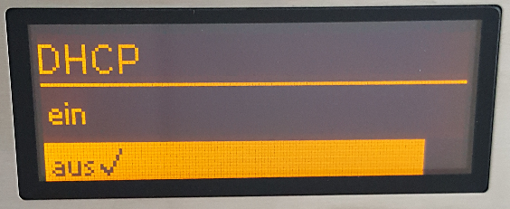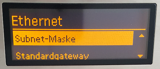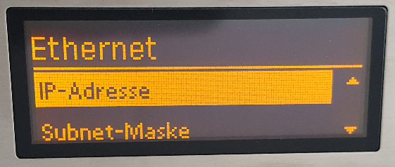 Folgen Sie mit den Pfeil-Tasten der Menüstruktur bis zum Punkt Schnittstelle: Ethernet.