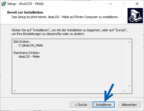 Sind alle Einstellungen richtig gesetzt, können Sie im nächsten Fenster durch einen Mausklick auf den Button Installieren die Installation starten.