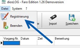 Um das Programm in der Vollversion zu betreiben, werden die Lizenzdaten über den Menüpunkt Datei, Auswahlpunkt Registrierung eingegeben.