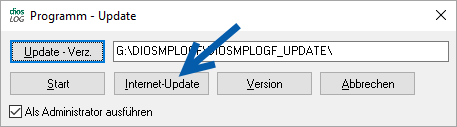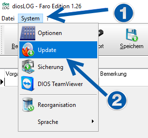Öffnen Sie das Fenster Programm-Update über den Menüpunkt System, Auswahlpunkt Update.