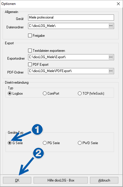 Für den Miele Desinfektor der G-Serie, wird im Abschnitt Geräte-Typ die G-Serie gewählt.