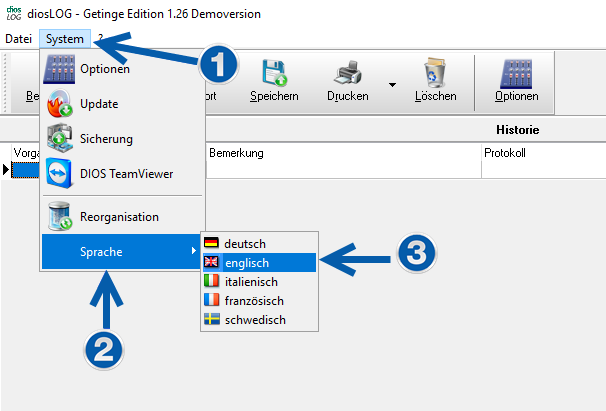 Choose the language for the software in the menu item