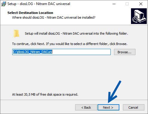 A destination folder for the installation is proposed in the following dialogue. If you wish to install the software at another location, click once the Browse button to specify the required location. Afterwards click the Next button.