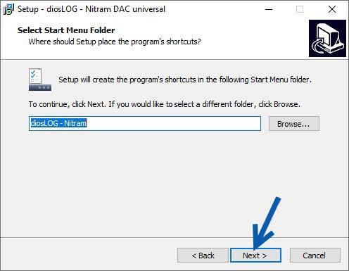 An appropriate start menu folder can be selected in the next window. Click the Next button to confirm either the proposed or specified directory.