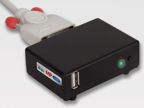 Switch off the DAC Universal. Connect the supplied serial data cable with the 9-pin connector (male) to the appropriate socket on the DAC. Now insert the plug at the other end of the cable (9-pin/female) into the appropriate socket on the back of the diosLOG Box. Hand-tighten the locking screws (red handles) on both plugs.